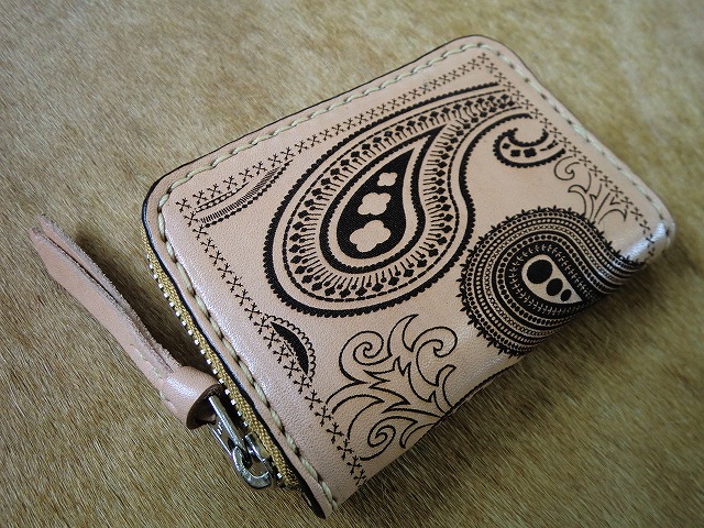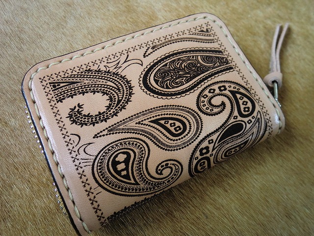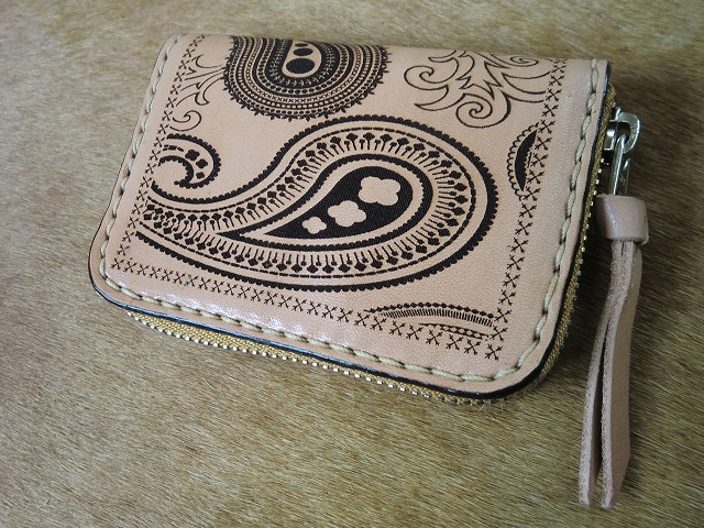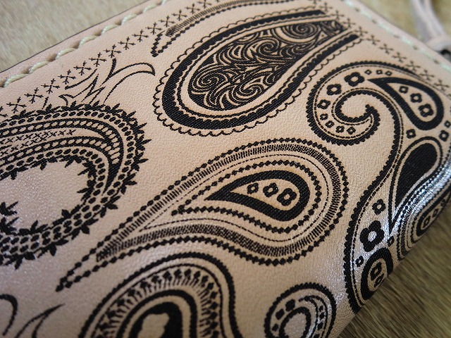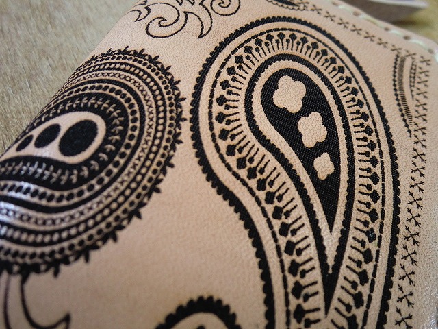ペイズリー柄を焼き入れたサドルレザー