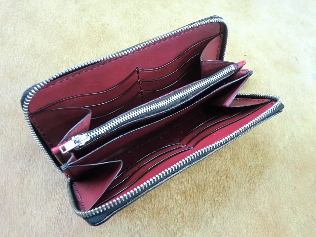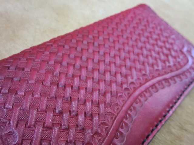 バスケットスタンピング仕様ラウンドジップロングウォレット赤