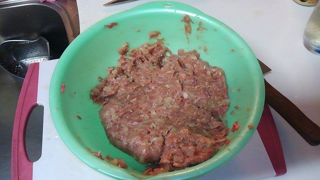 ▲材料を混ぜてこねる