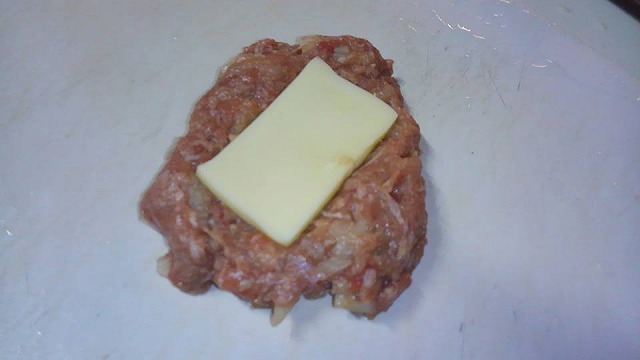 ▲チーズを入れて握る