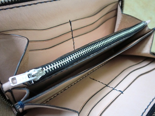 ▲小銭入れ側面にネームを刻印しました