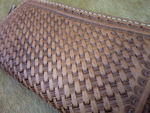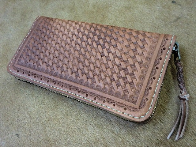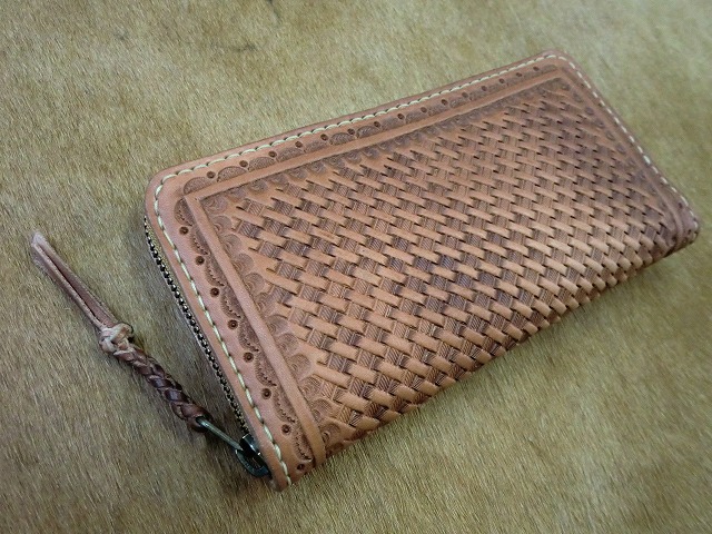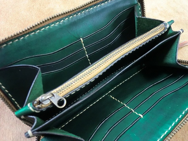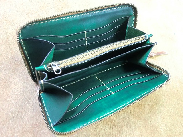 バスケットウェーブ仕様ラウンドファスナーロングウォレット 内装が緑