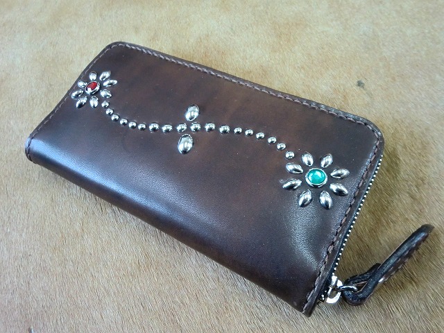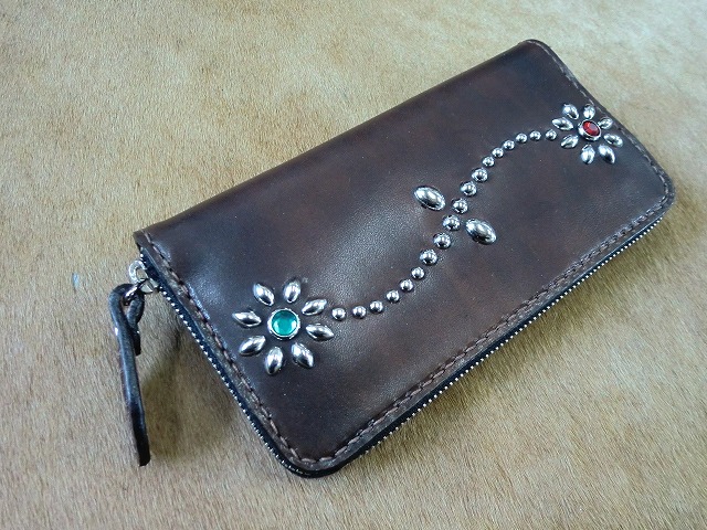 ラウンドファスナーロングウォレット フラワースタッズ