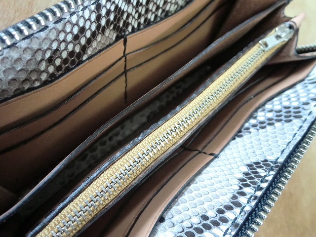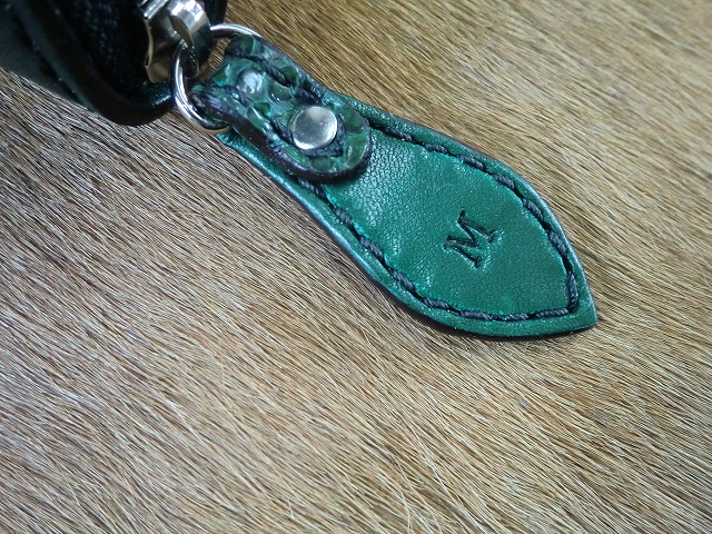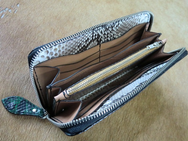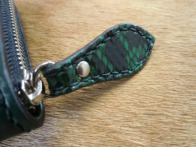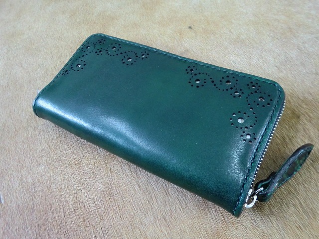 ラウンドジップロングウォレット 手染め緑パンチング仕様