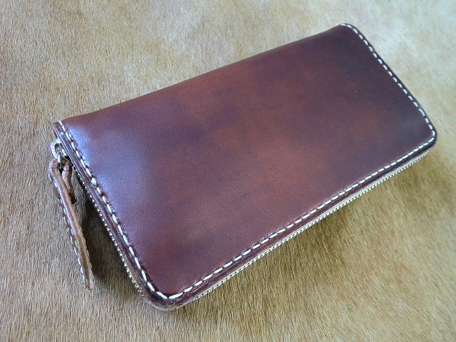 手染め茶色ラウンドファスナー長財布
