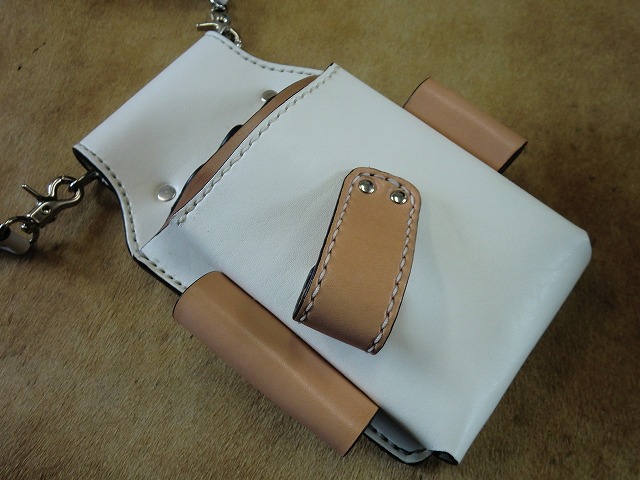 取り入れ白のヌメ革とサドルレザーで