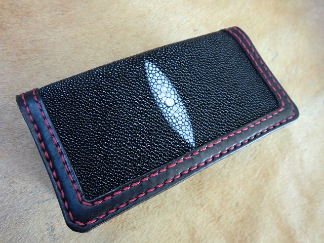 エイ革でインレイワークを施し製作した