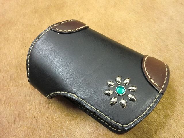 ▲革色はブラックサドルレザーと手染めで