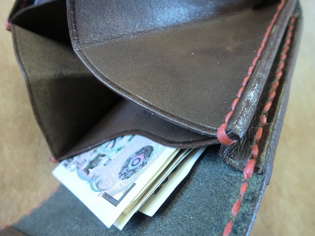 ▲ステッチ(縫い糸)はオレンジ色のシニュー糸