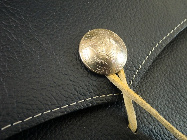 ステッチは白、コンチョに革紐をチョークし