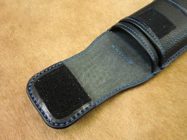 ▲裏面からカブセ(フタ)部分にブラックサドルレザー