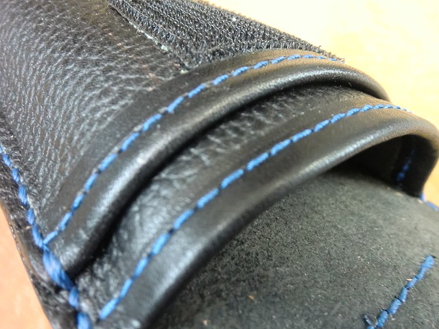 ブラックサドルレザーを使用したカブセ部分には
