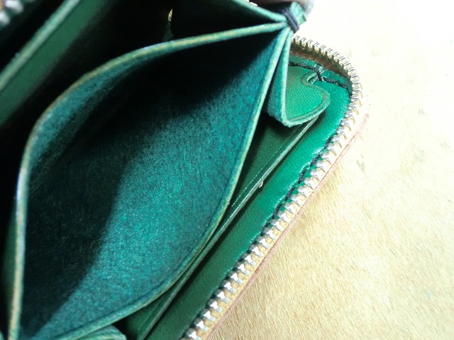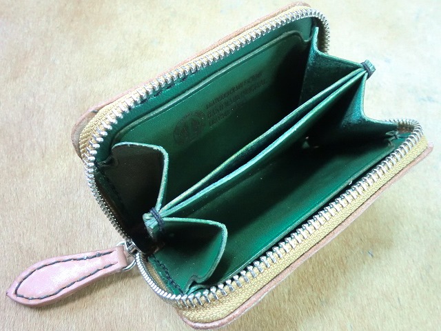 表面がタンで中身が緑のコインケース