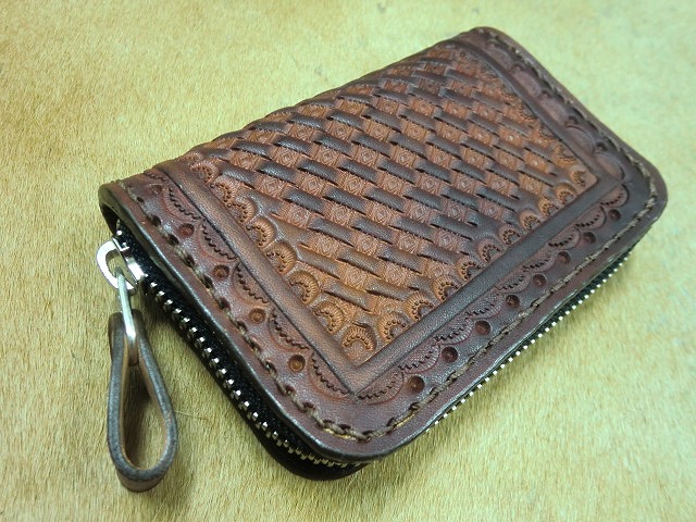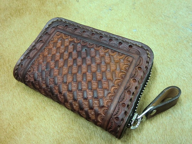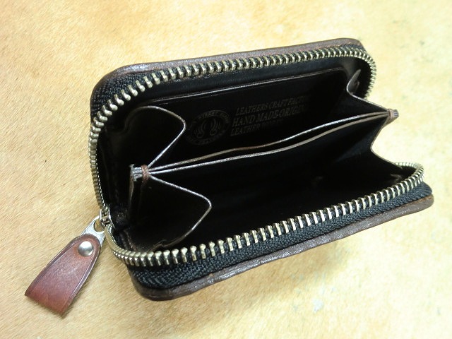 ラウンドファスナーコインケース バスケット 手染め茶色