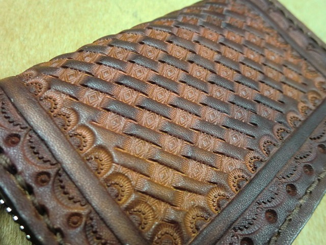 スタンピングを打ち込み手染めで茶色に
