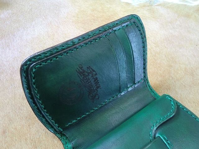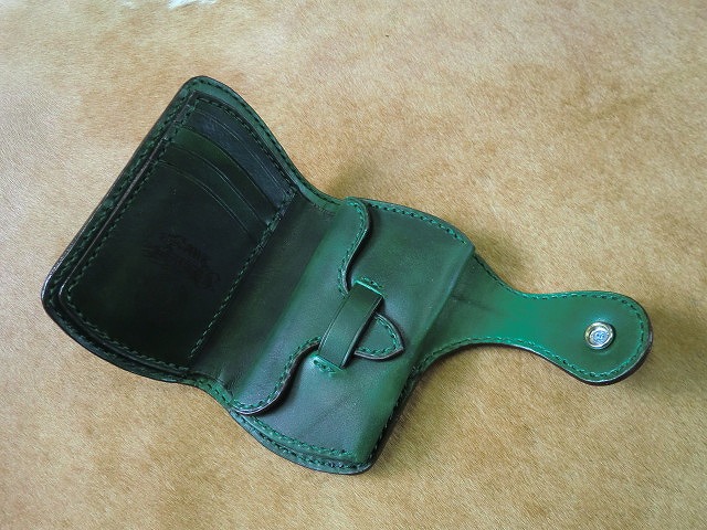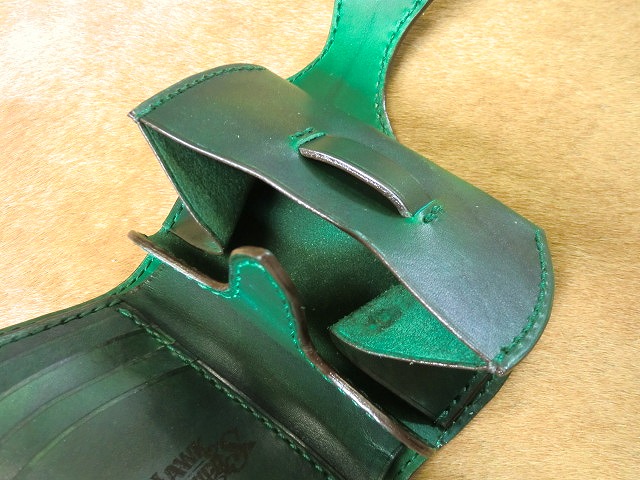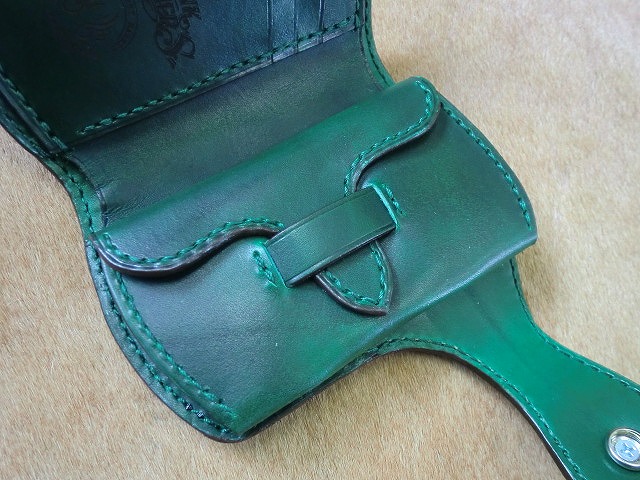 サドルレザーと手染めで緑に染色を