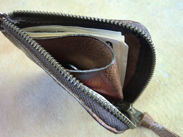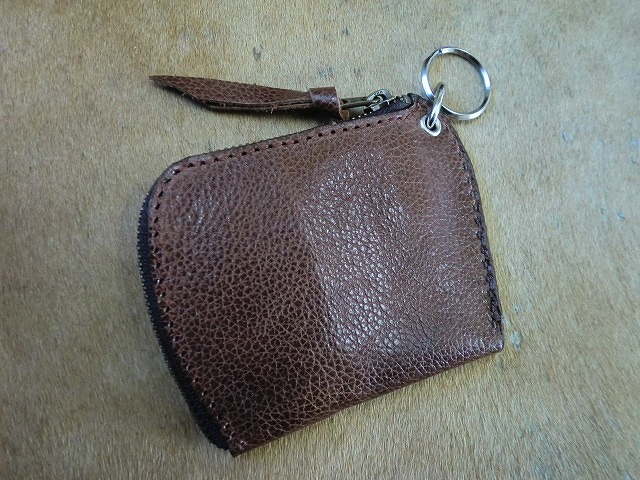 茶色の牛革で製作したL字ファスナータイプの