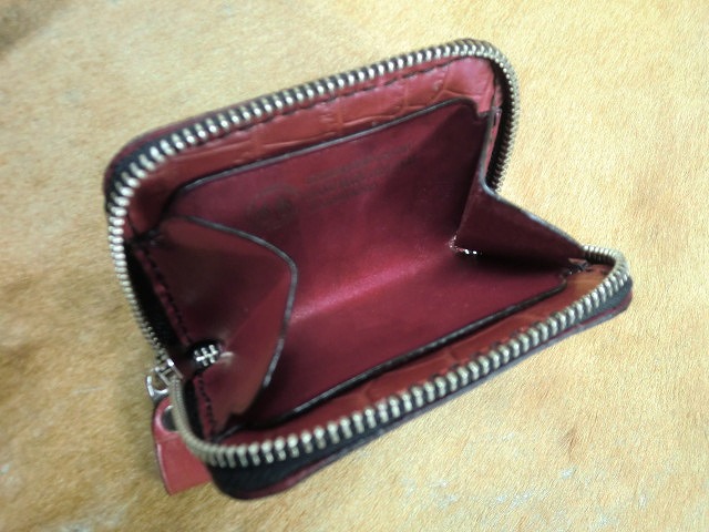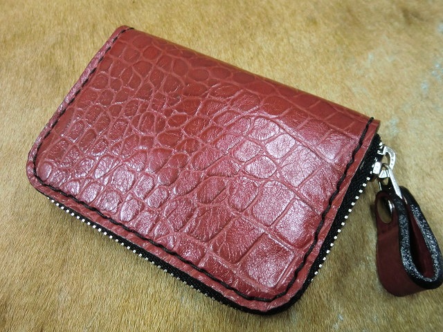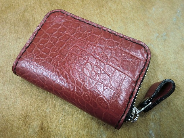 赤のワニ型押しコインケース