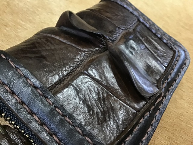 焦げ茶のオイルレザーの