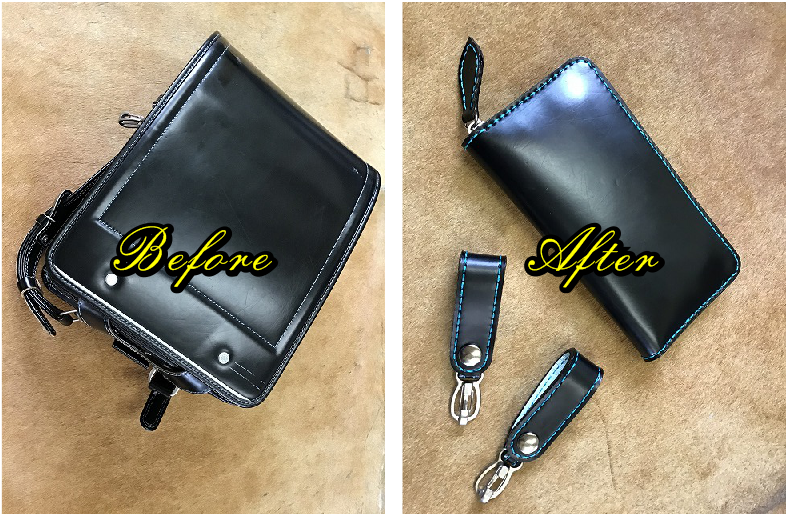 ランドセルをファスナー長財布とキーホルダーにリメイク