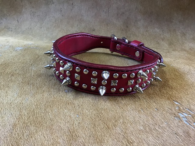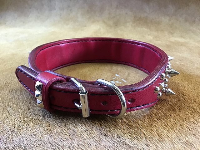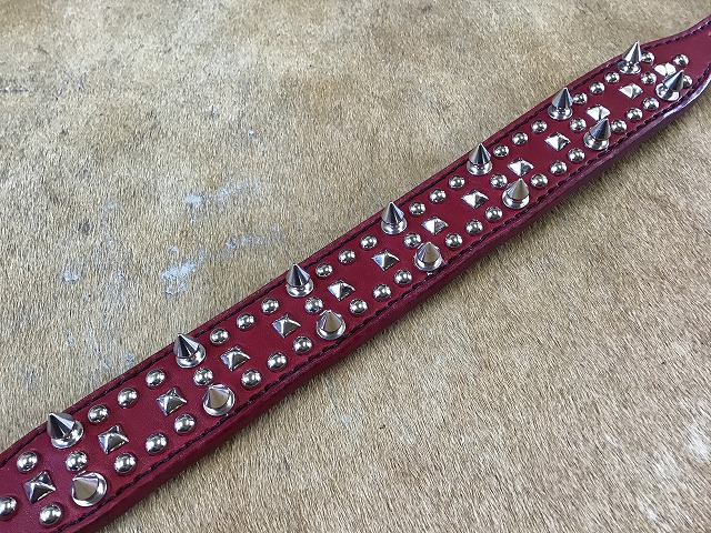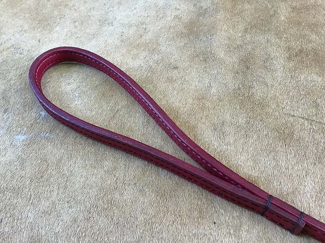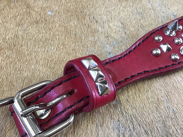 ▲手染めで赤をしたサドルレザーにロンドンスパイクを