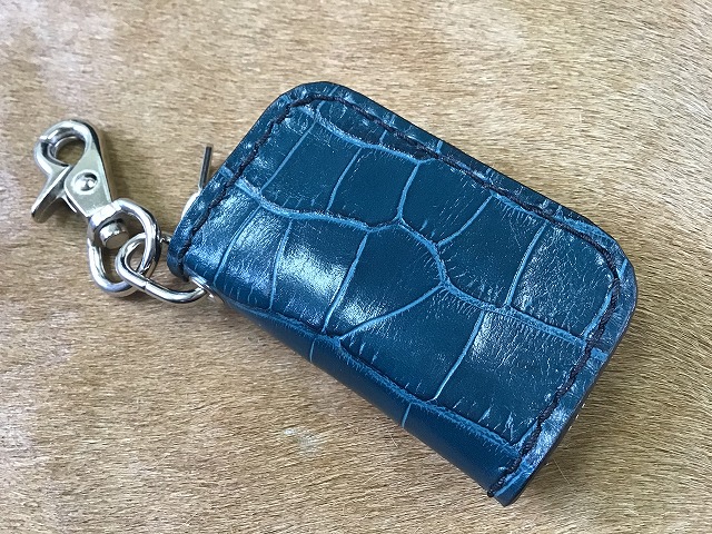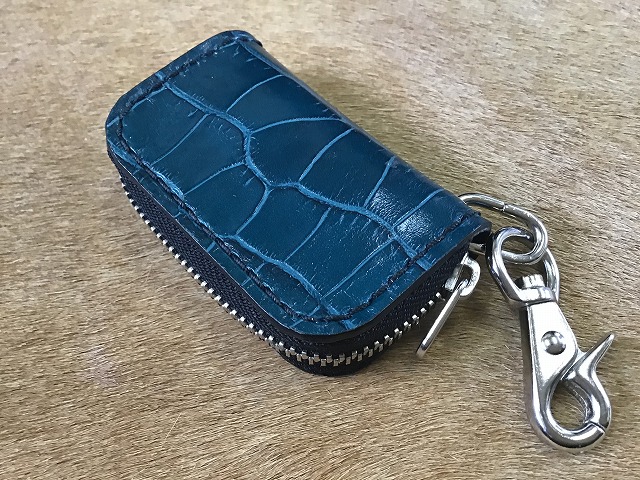 ワニ型押し牛革 ファスナーキーケース