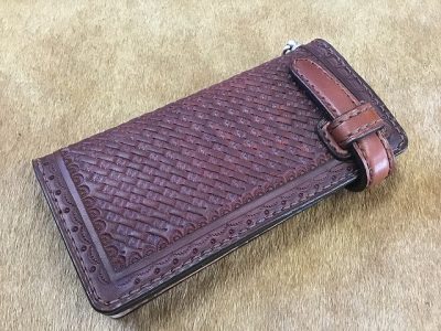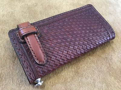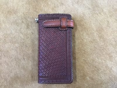 差し込みベルトタイプの長財/手染め茶色のバスケット