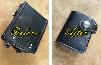 ランドセルをコンチョ付きの二つ折り財布にリメイク