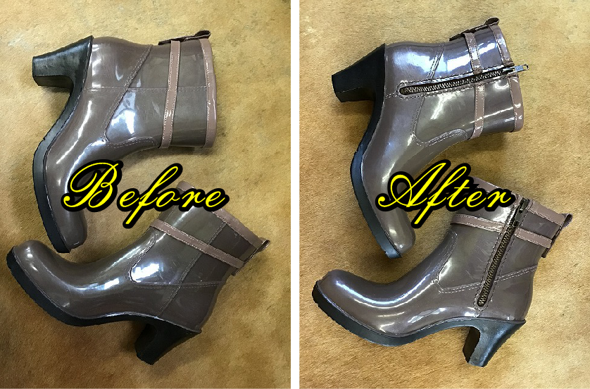 レインブーツにファスナー取り付け