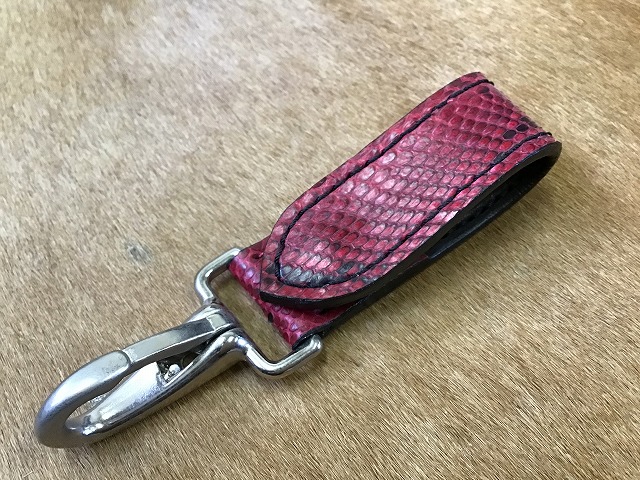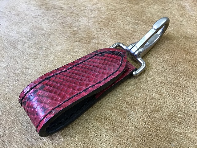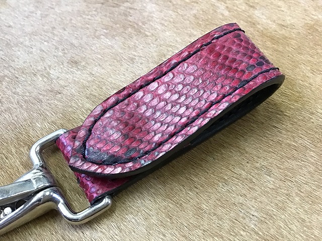 ダイヤモンドパイソンのベルトループ/手染め赤