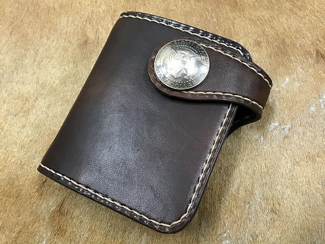 コンチョ付きハーフウォレット手染め焦げ茶