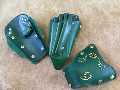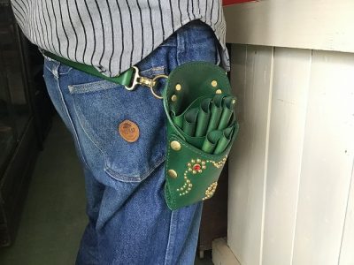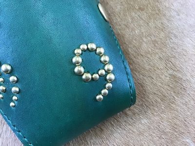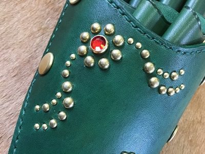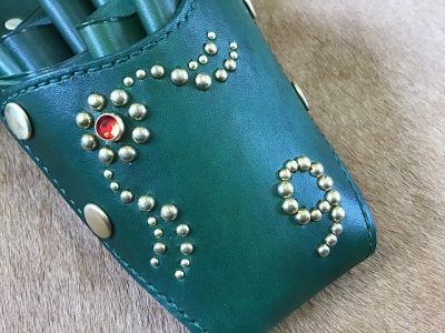 シザーケース/手染め緑&スタッズワーク