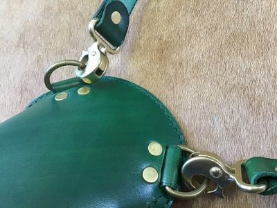 緑に染色を施したサドルレザーで