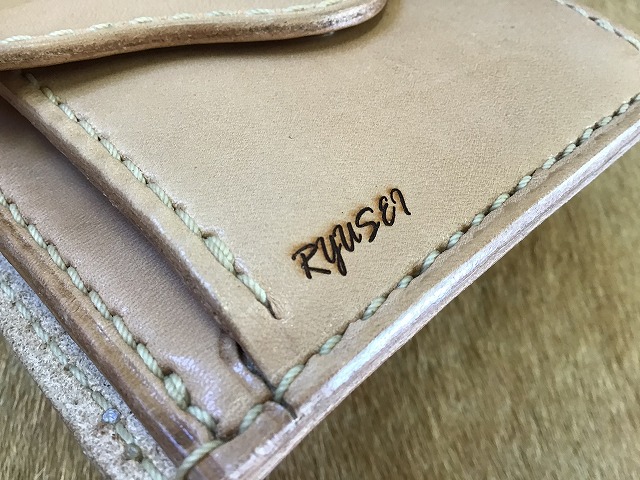 ■ネームを筆記体調の書体で焼き入れました。