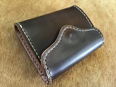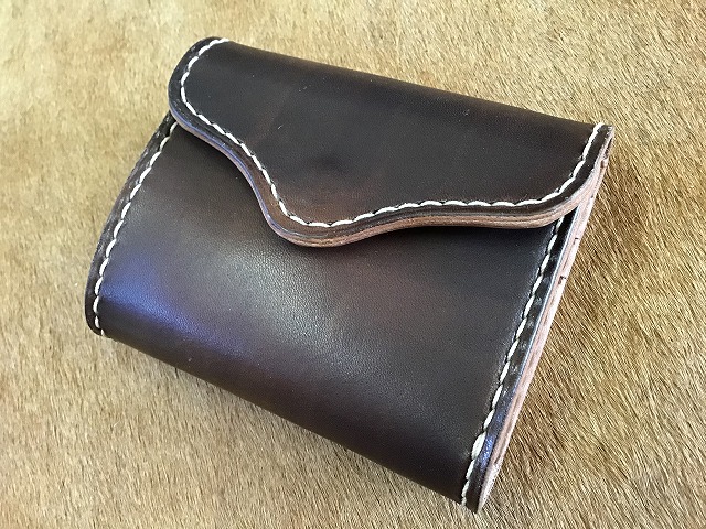 ボタンフラップハーフウォレット/手染め焦げ茶 丘染め