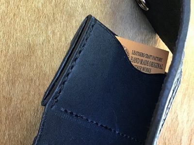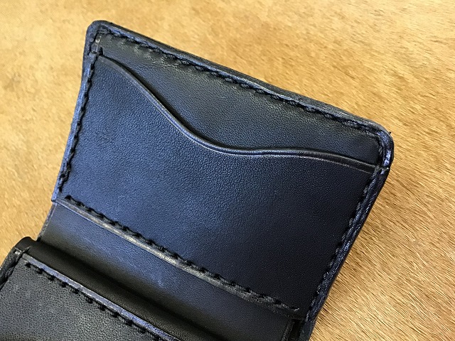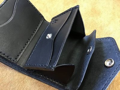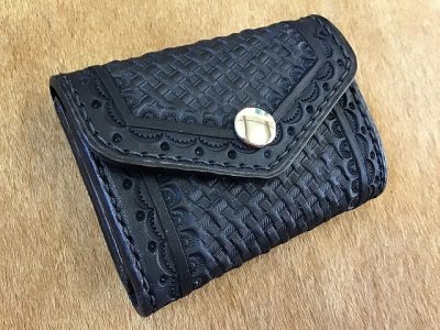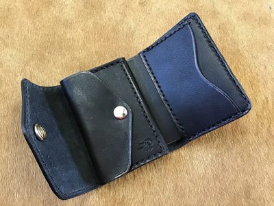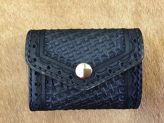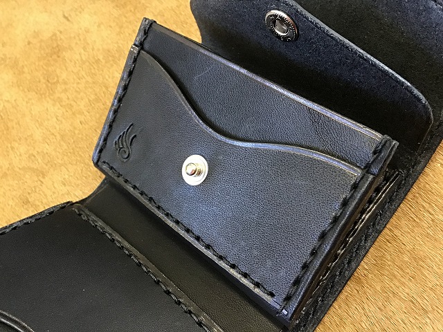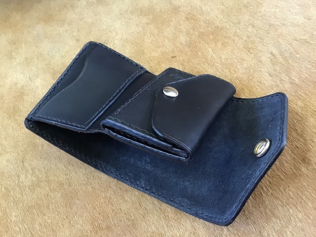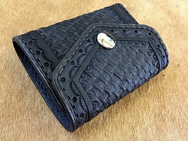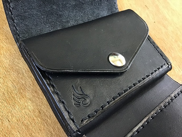 ワンボタンフラップミニウォレット/バスケット/手染め黒