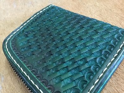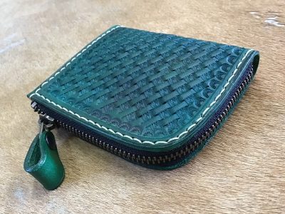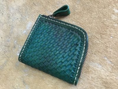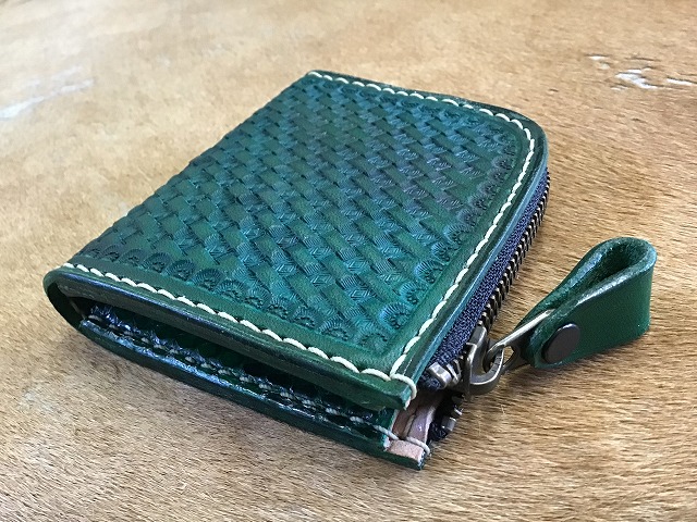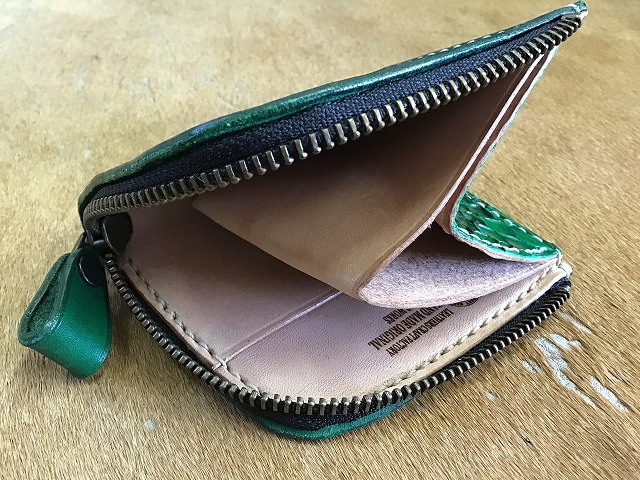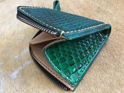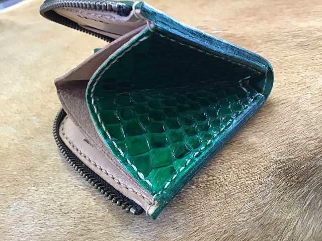 L字ファスナーミニウォレット/バスケット/緑/パイソン