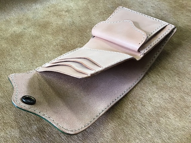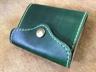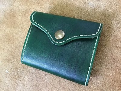 ボタンフラップハーフウォレット/手染め緑