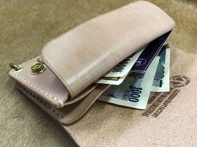 ナチュラルカラーのサドルレザーで