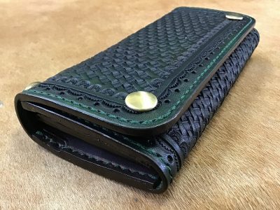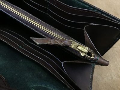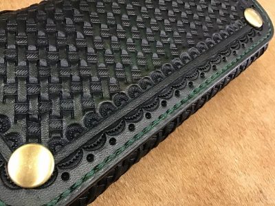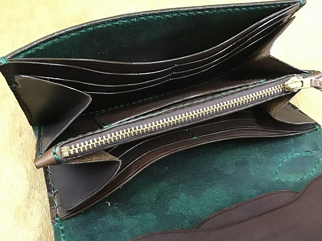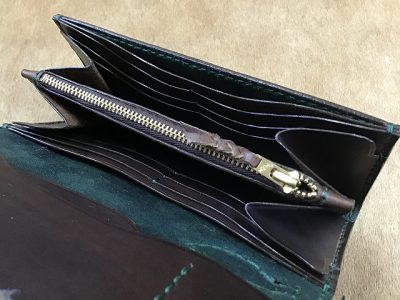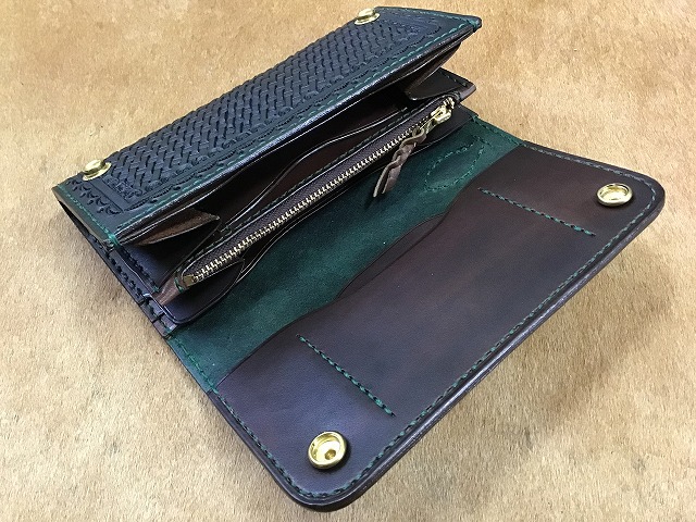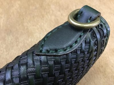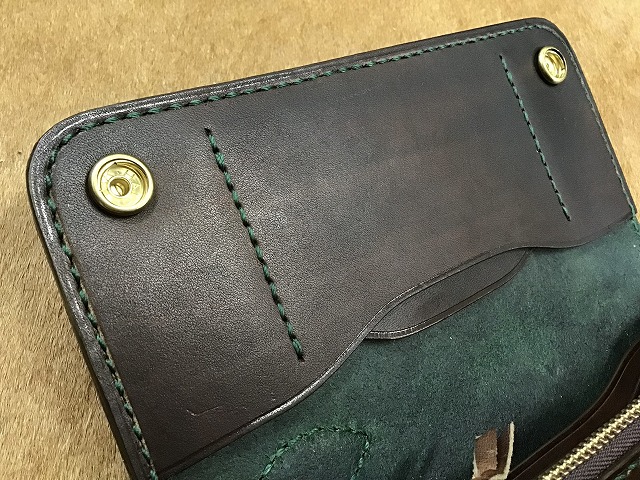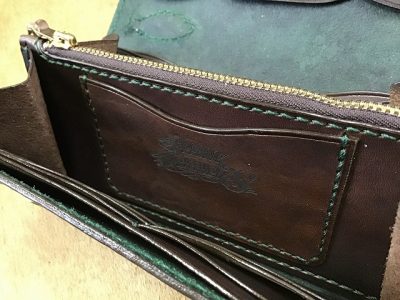 ■手染めで焦げ茶に染色を施したサドルレザーで