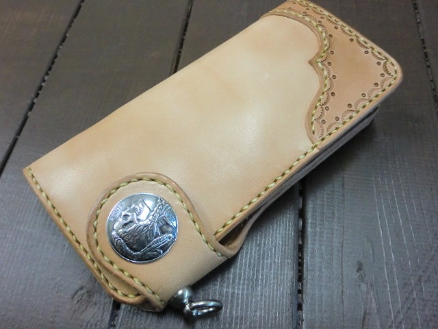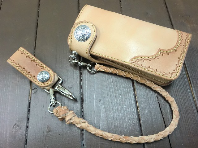 フラップタイプのロングウォレットと、コンチョに
