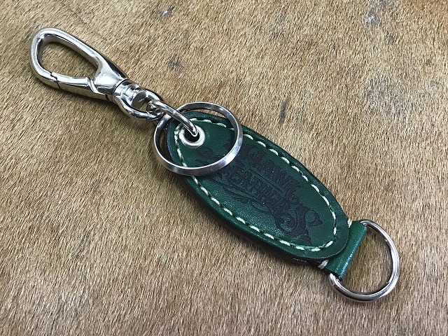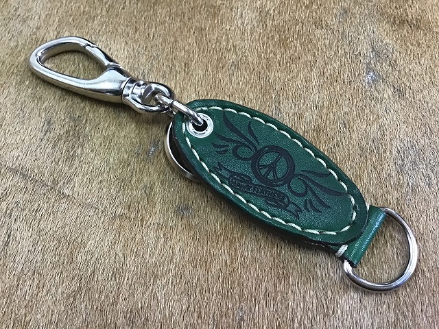 両面ロゴ入り楕円キーホルダー手染め緑
