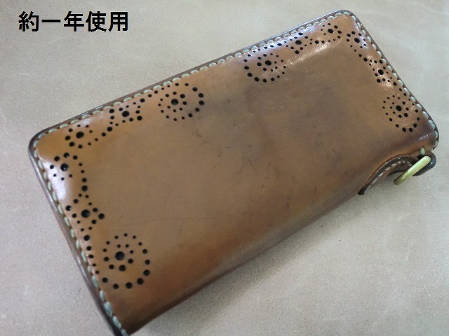 施して製作したロングウォレットでしたが1年の歳月で