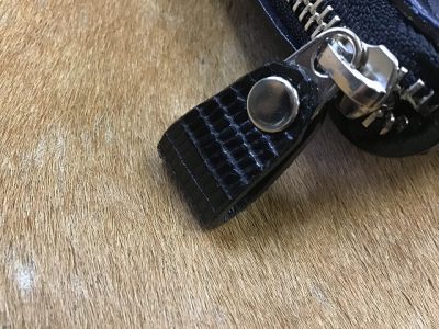 ■ファスナーの引手にもトカゲ革を使用