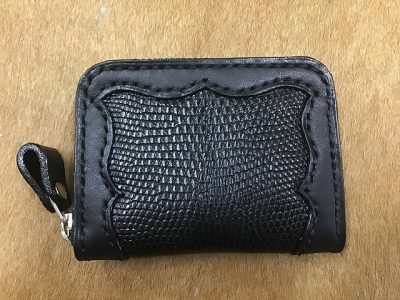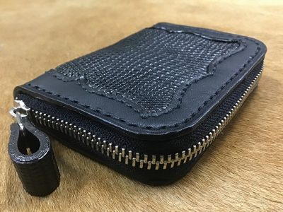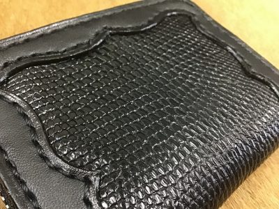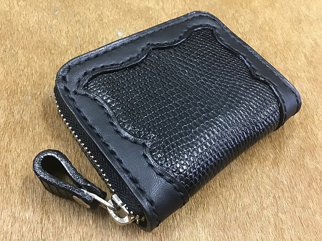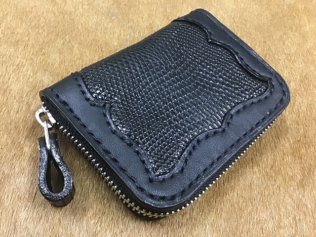 黒のヌメ革に黒のリザードスキン(トカゲの革)で