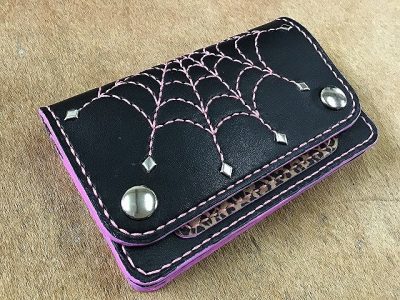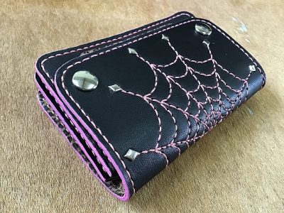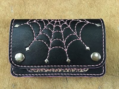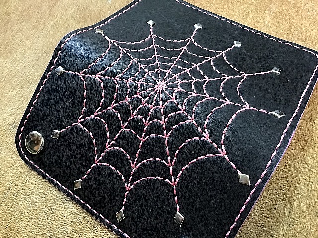 黒の牛ヌメ革を皮革素材に、クモの巣をモチーフに、