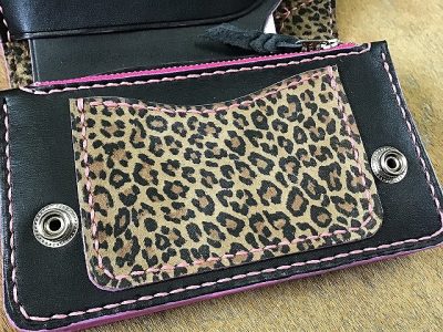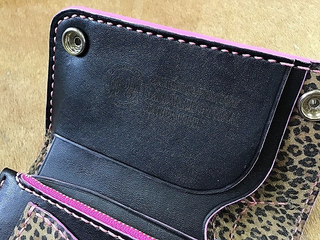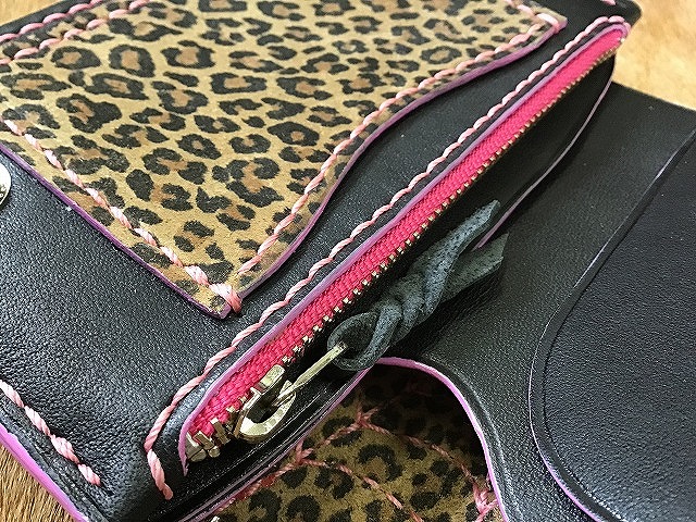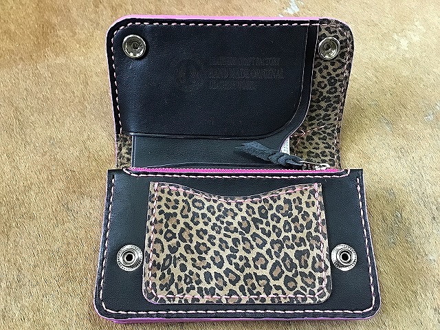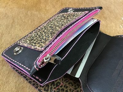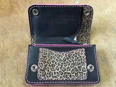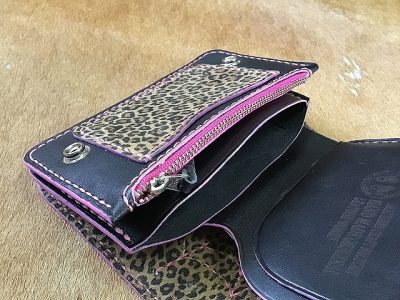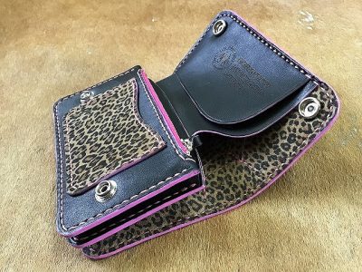 ■内貼りに豹柄のスエードを貼り合せた札入れ