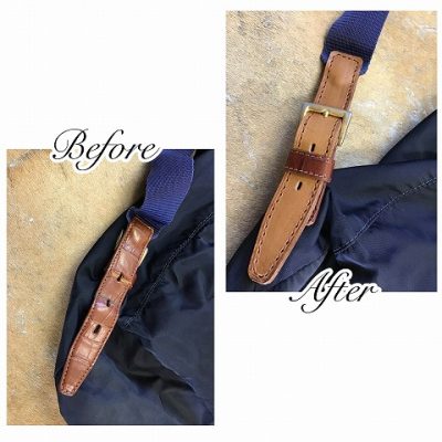 頂き、ストラップ部分を牛革で作り直し