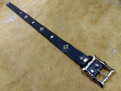使用してスタッズワークを施しし製作したスタッズベルトです。