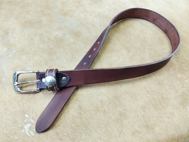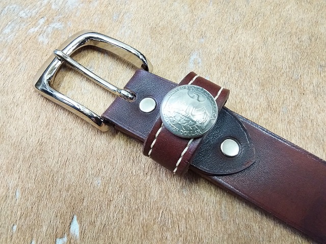 コンチョを取り付け製作した35mm幅のベルトです。